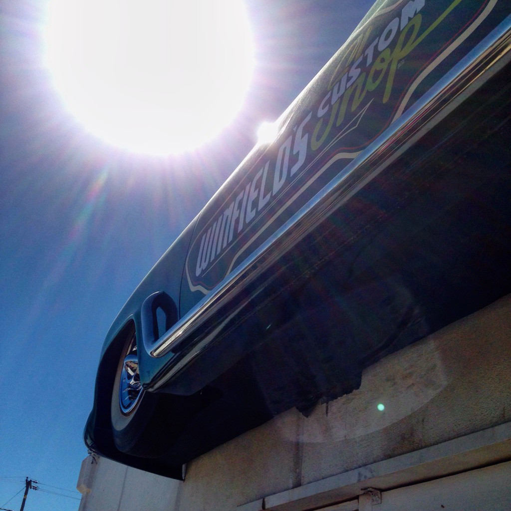 I stumbled around the show in a overheated road worn daze and managed to get a few pictures of some of the incredible cars that made it out to this show. I loved the variety of cars there, it was pretty awesome to see some insane Mad Max inspired off road cars next to incredible customs, hot rods, choppers and junked cars all in one place. This is probably the most impressive show I’ve ever been to, it was incredibly personal and just an amazing scene. The kinship shared between people who choose to live in this harsh environment was also pretty impressive, everyone I spoke with was incredibly warm (no pun intended) and hospitable. After a few hours we decided to call it a day and head out to get lunch before heading back to our respective corners of the state. As we rolled out together from the backlot and out the front gate onto the lonesome desert road I felt a newly awakened sense of brotherhood and camaraderie, as I rode out behind John in his newly plaqued custom Montego back towards civilization I felt like we had accomplished something together just by being in that place and touching the same dirt. Gene Winfield’s shop is a truly incredible place to get to see, and this show was an awesome thing to be a part of.